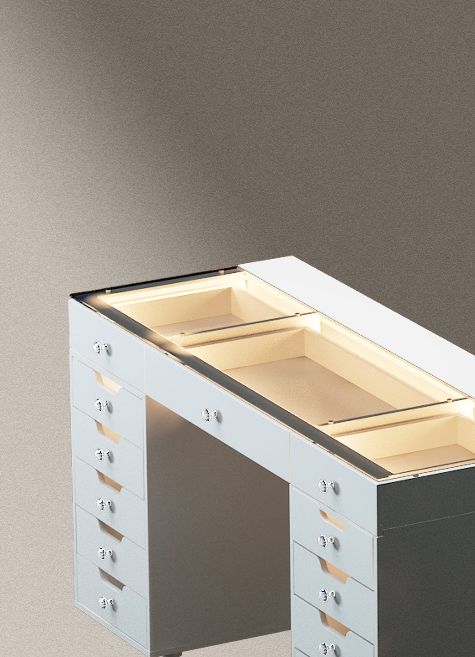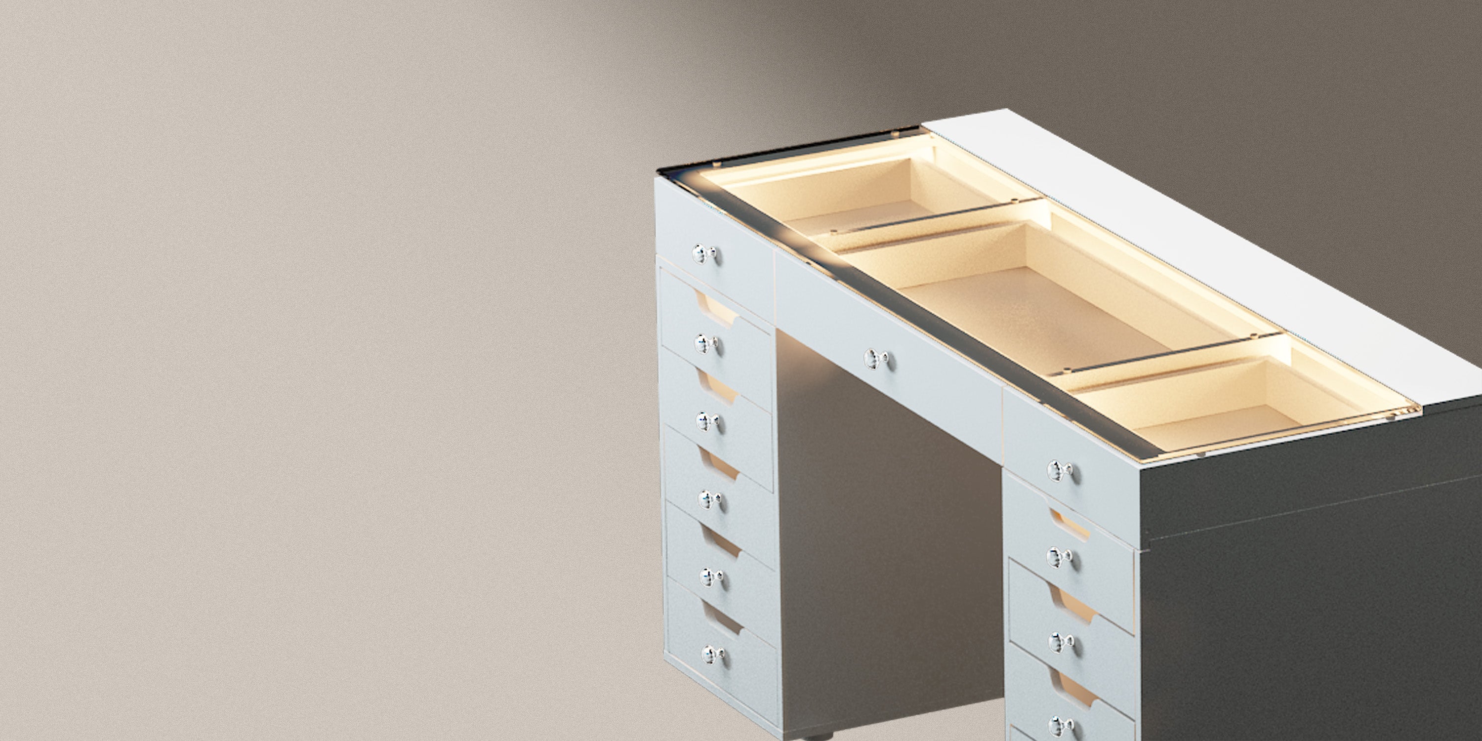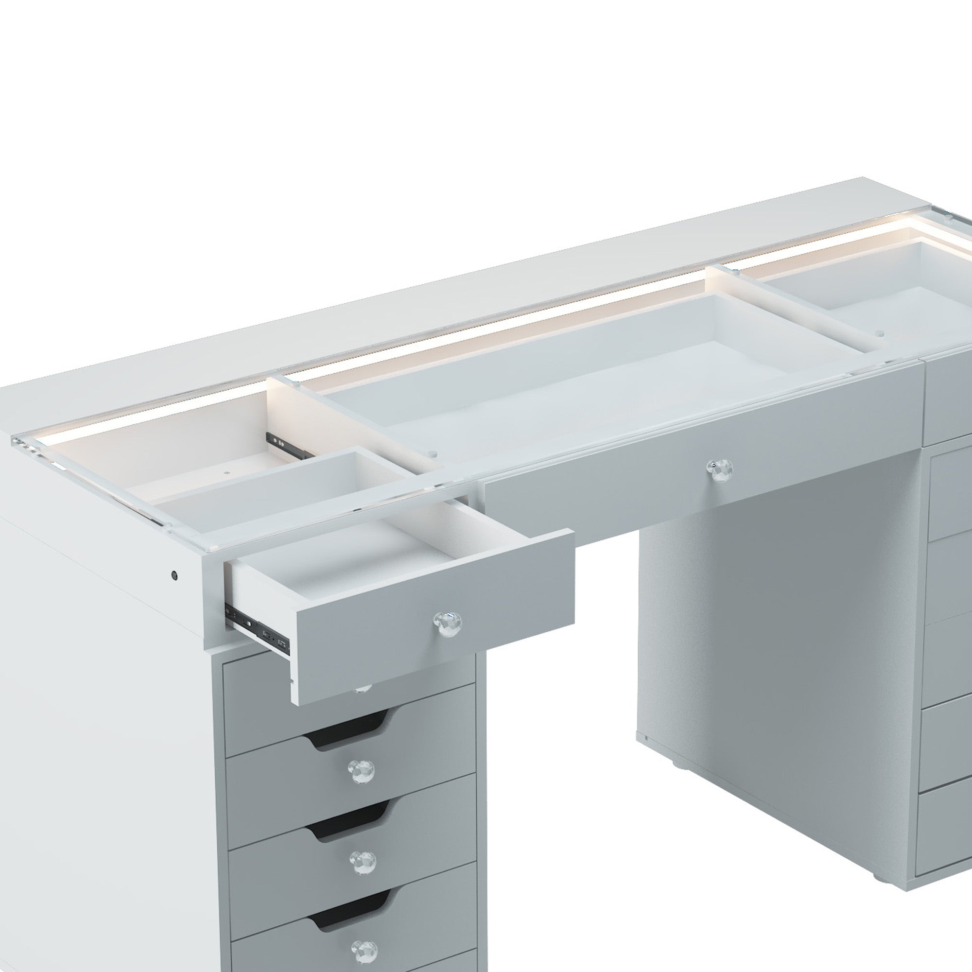 VANITII Eva Vanity Desk - 13 Storage Drawers with Full Light