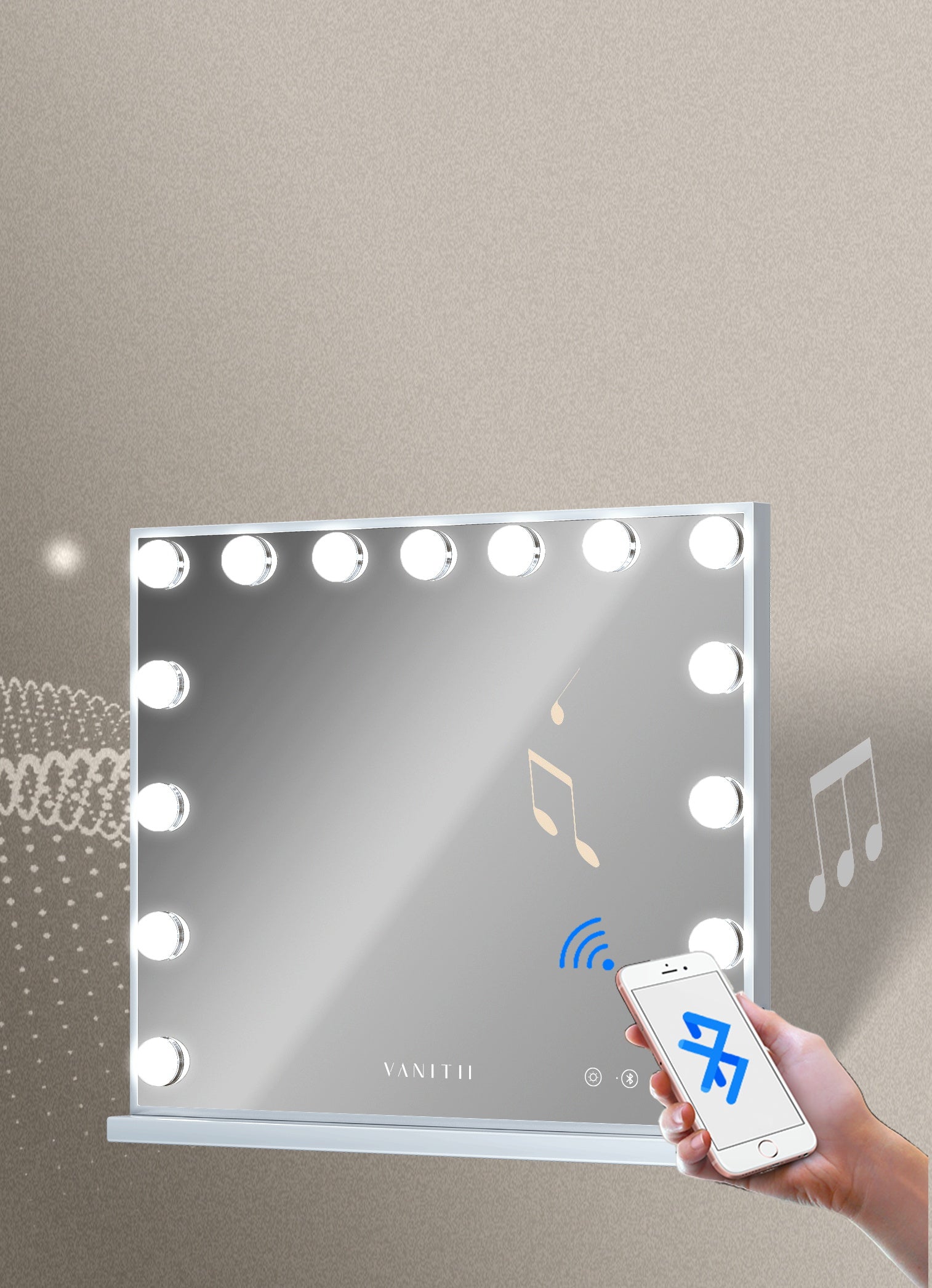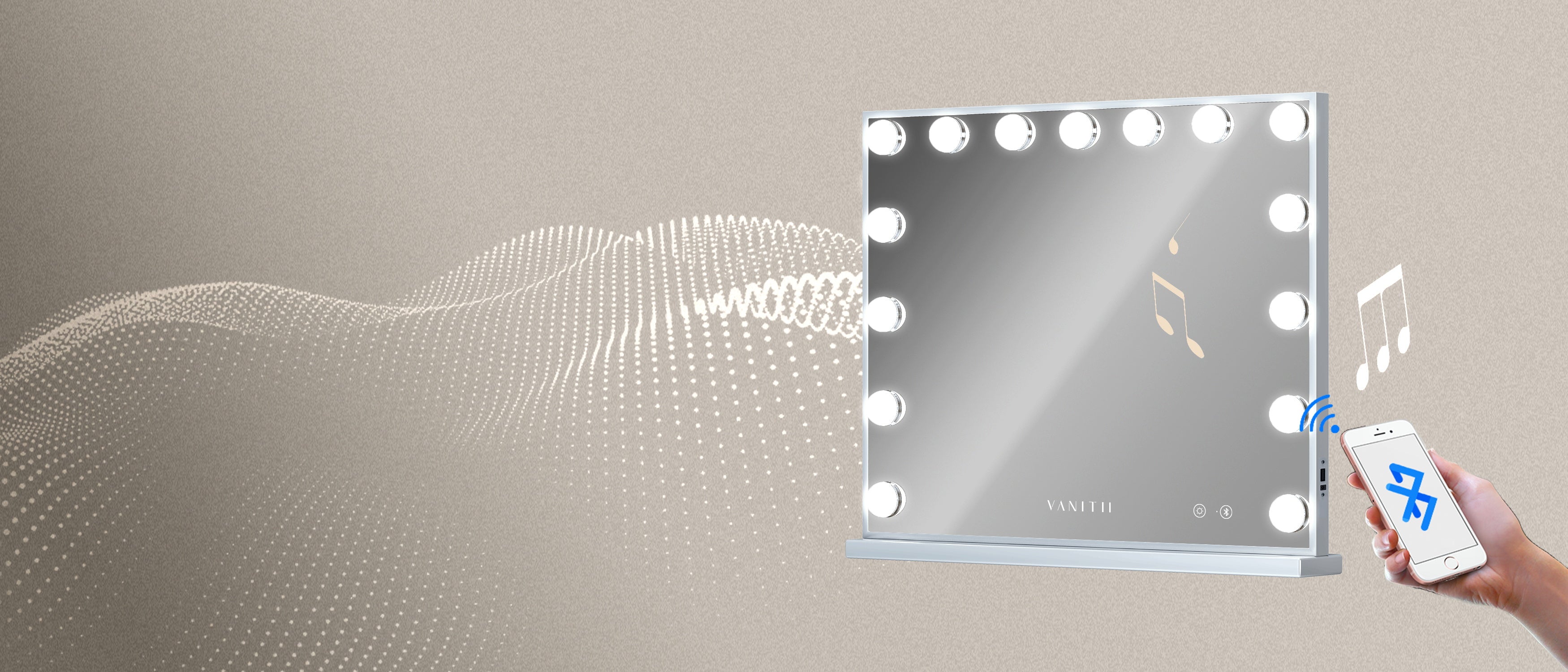 VANITII Mary Hollywood Vanity Mirror with Bluetooth XXL - 15 Dimmable LED Bulbs