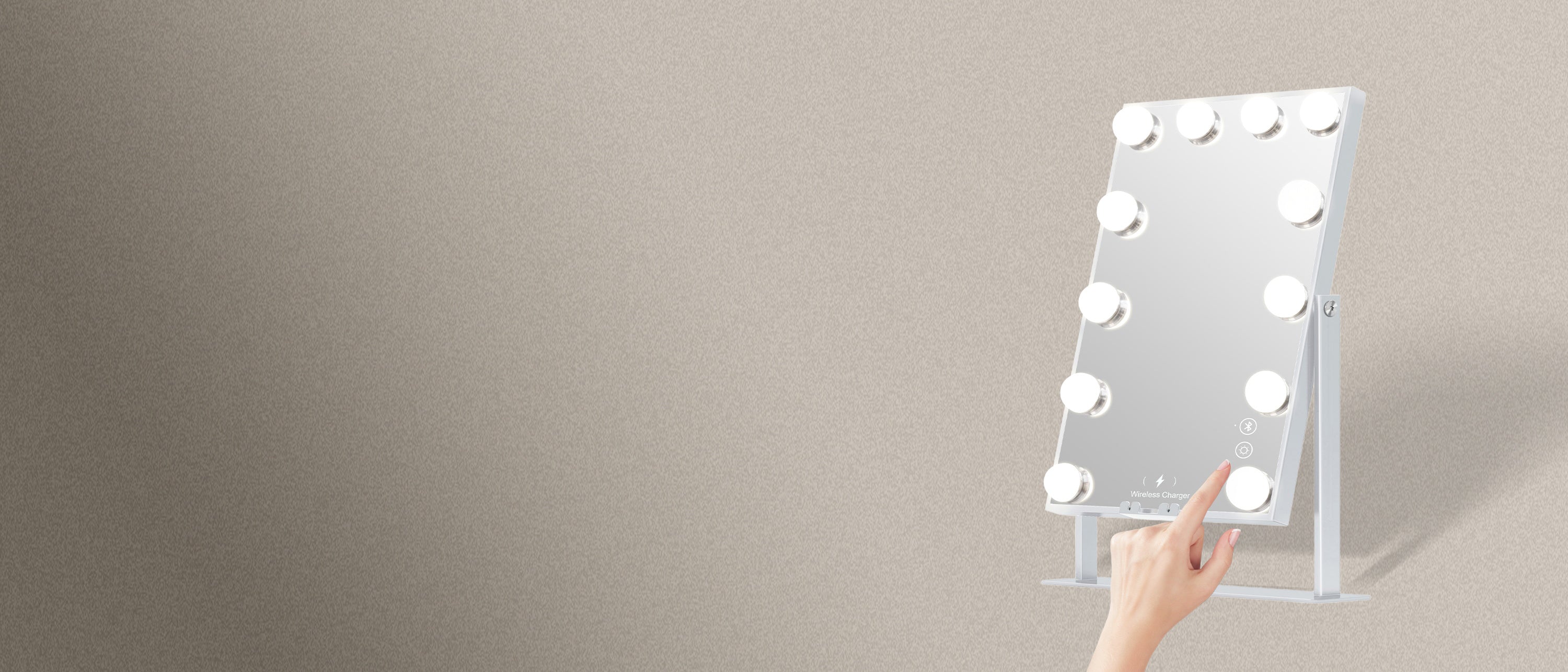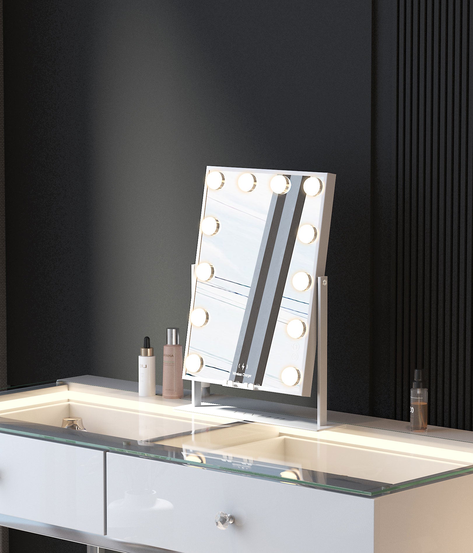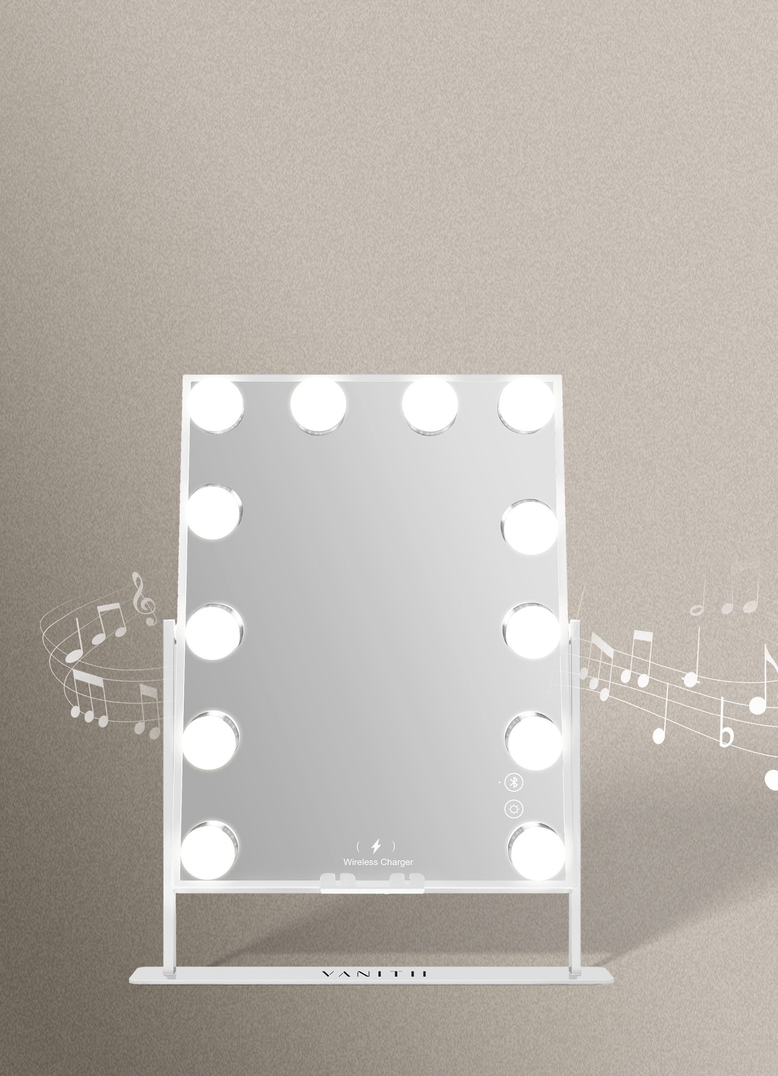 VANITII Hathaway Hollywood Slim Vanity Mirror with Wireless Charging L - 12 Dimmable LED Bulbs