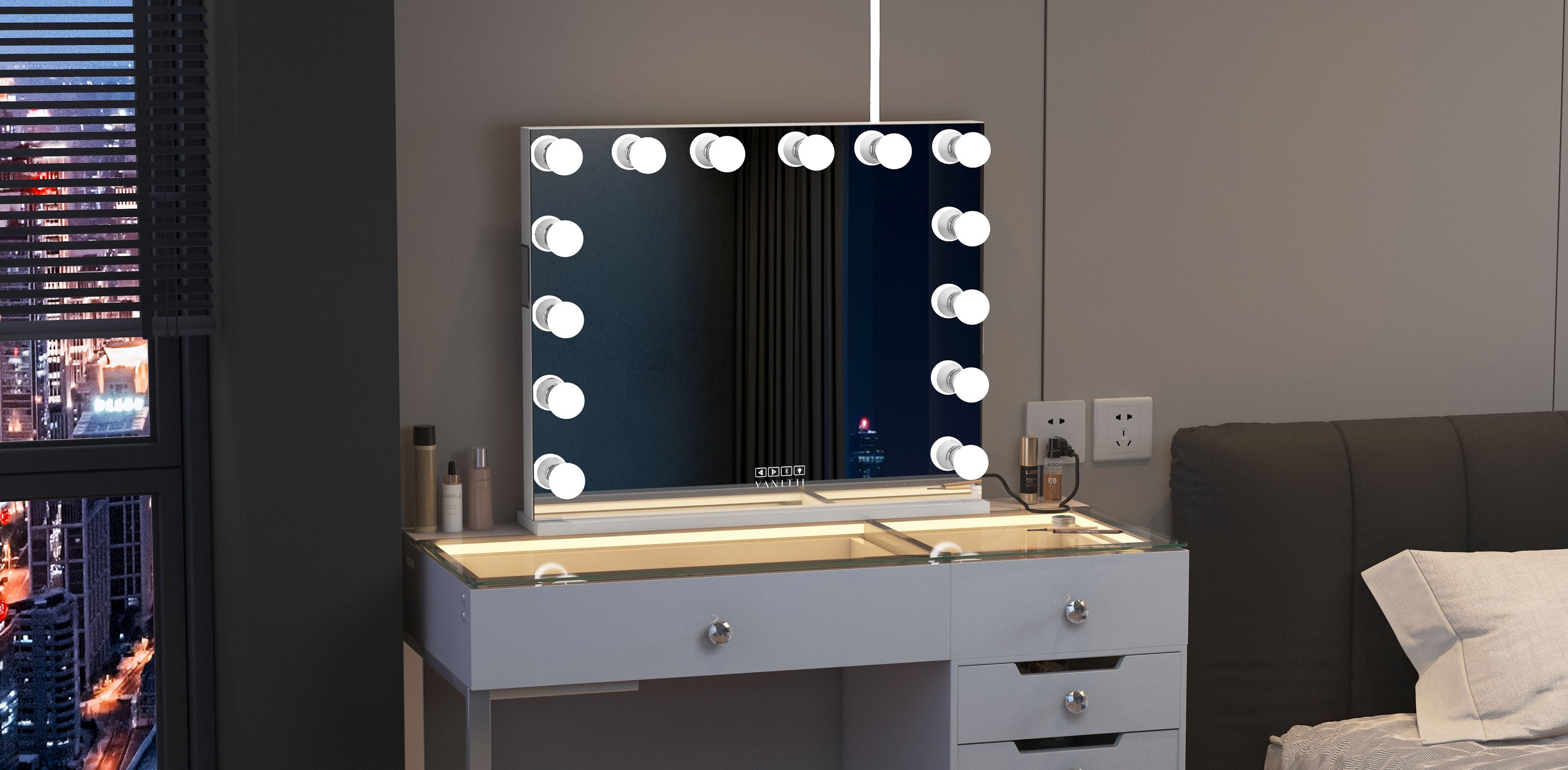 VANITII Marilyn Hollywood Vanity Mirror Pro with 14 Dimmable LED Bulbs