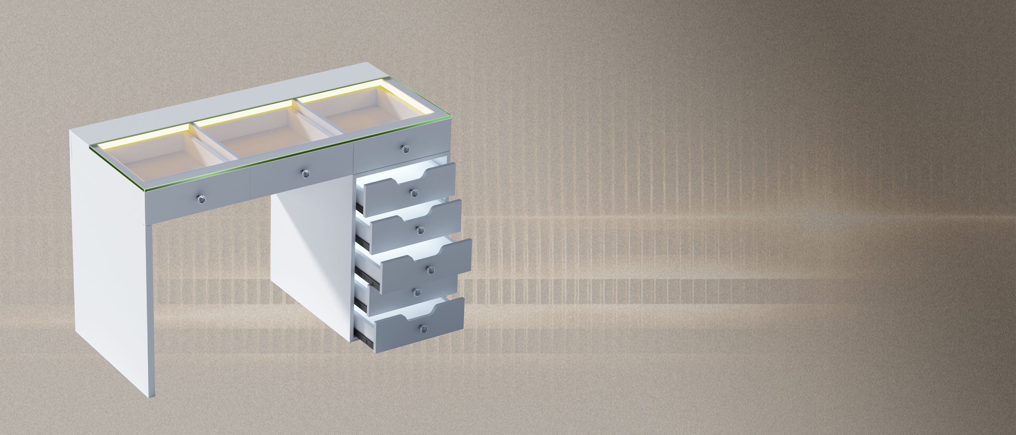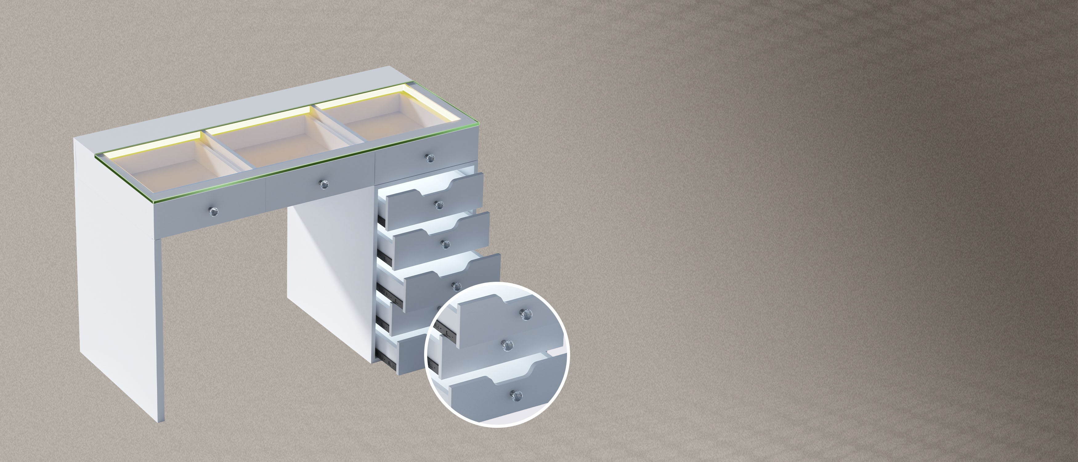 Multi-purpose Storage Drawers - 8 soft close large table drawers to help you organize your accessories.