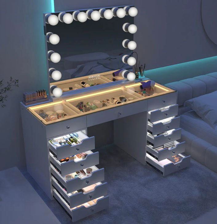 Start with one of our vanity desk and create your bundle by adding a glamorous Hollywood vanity mirror